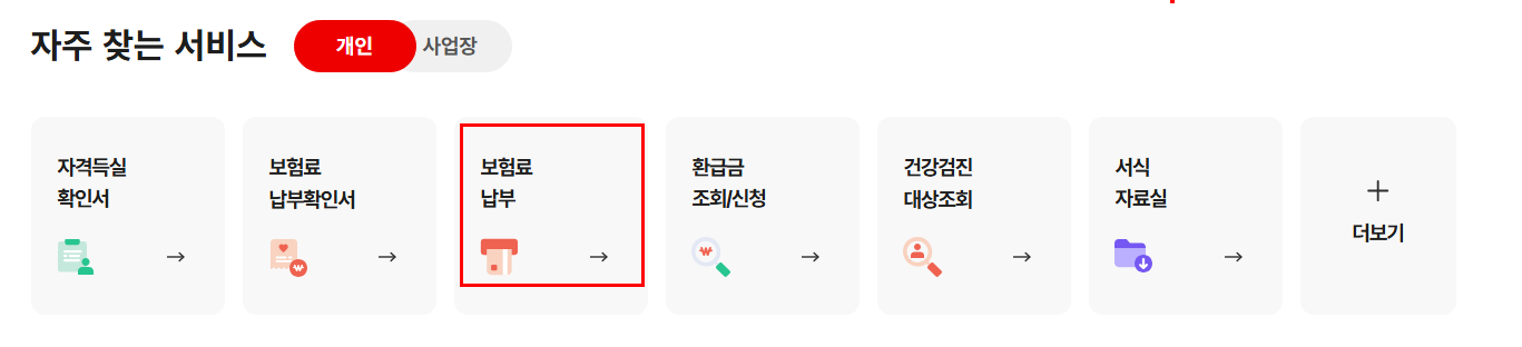 - 공동인증서(구 공인인증서) 또는 간편인증 사용 - 상단 메뉴 → [민원서비스] → [서비스찾기] → [보험료 조회/납부] / 아래로 내려보면 자주찾는 서비스에서 바로 확인가능!