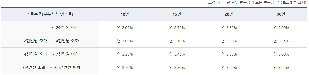 대출 금리는 2.65%에서 3.95% 사이로, 소득 수준에 따라 차등 적용 됨