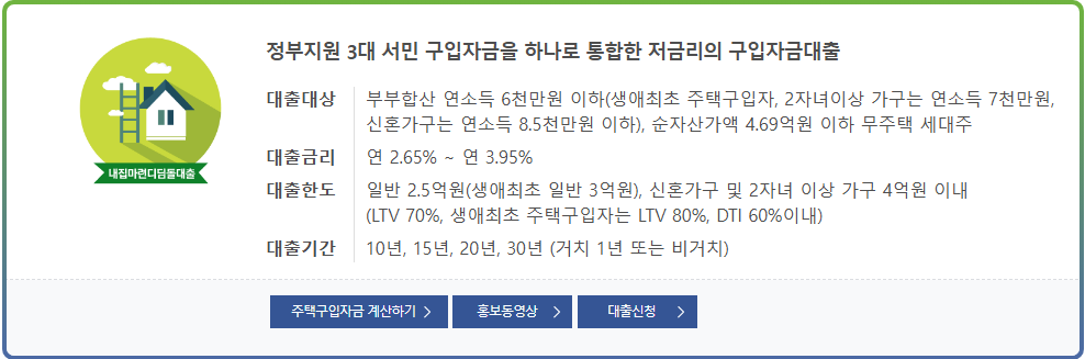 대출 조건 및 자격 (주택도시기금-내집마련 디딤돌 대출)