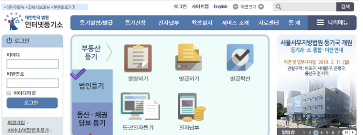 *"인터넷 등기소 →법인인감증명서 발급 예약"을 하고 가면 대기시간을 절약할 수 있습니다.