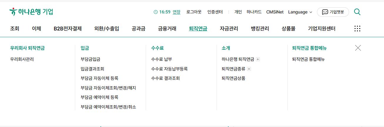 2. 하나은행 로그인 > 퇴직연금 > 우리회사 관리