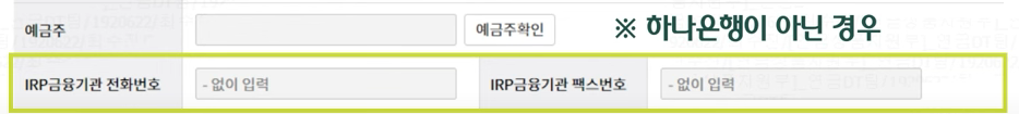 *하나은행이 아닌경우 irp금융기관 전화번호 입력