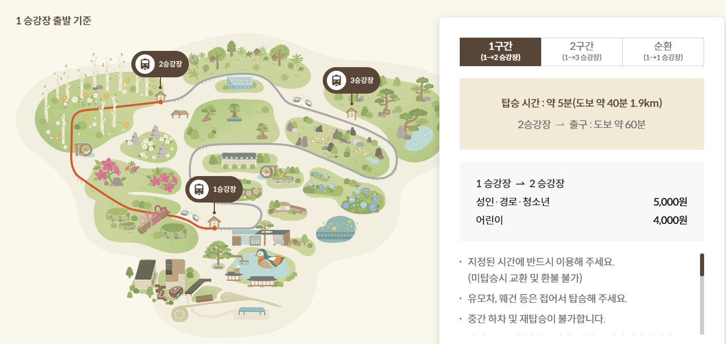 - 운영 시간 : 오전 9시 ~ 오후 6시 (입장 마감은 오후 5시, 계절·기상 상황에 따라 변동)
